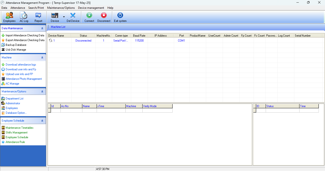 ZKTIME Attendance Software is a powerful and user-friendly solution designed to efficiently manage employee attendance and work hours. Ideal for businesses of all sizes, it offers real-time tracking, automated reporting, and seamless integration with biometric devices. With ZKTIME, organizations can streamline workforce management, reduce payroll errors, and improve productivity through accurate and reliable attendance records.
